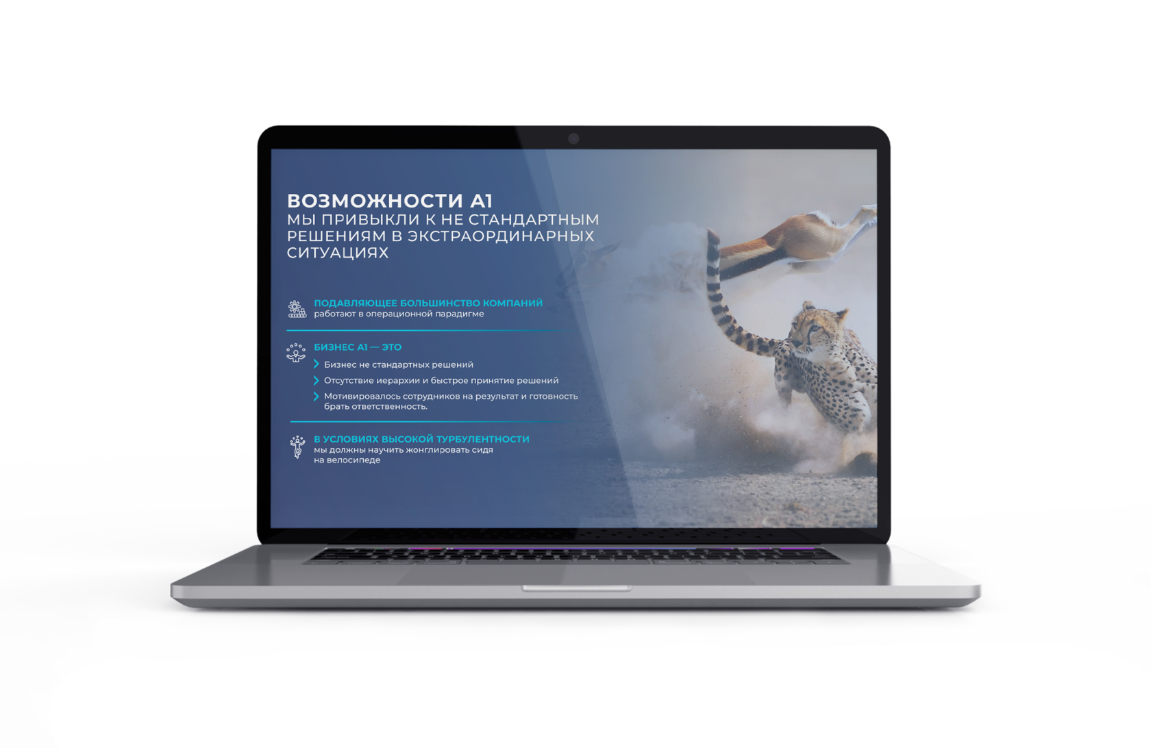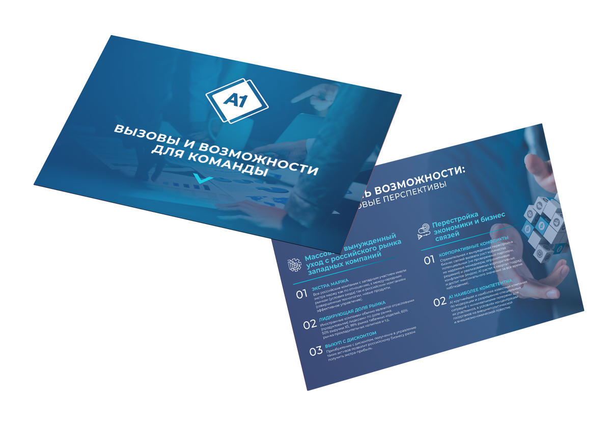 Создать бизнес-презентацию, которая наглядно будет представлять большой объём информации, а также упрощать пользовательское восприятие больших данных, эффектно представить информацию широкой аудитории простым и наглядным языком а также повысить имидж и укрепить бренд компании на конкурентном рынке